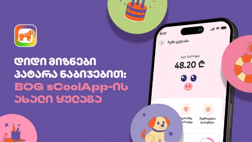 საქართველოს ბანკი მოსწავლეებზე ზრუნვას აგრძელებს. დღეიდან, მოსწავლეებს სპეციალურად მათთვის შექმნილ აპლიკაცია - sCoolApp-ში განახლებული გოჭი-ყულაბა დახვდებათ. განახლებული ციფრული ყულაბა მოსწავლეებს შესაძლებლობას აძლევს, თანხის დაზოგვა მარტივად, უსაფრთხოდ და სახალისოდ დაიწყონ და აქციონ ის ყოველდღიურ ჩვევად, რაც დამოუკიდებელი ფინანსური გადაწყვეტილებების მიღებაში დაეხმარებათ.