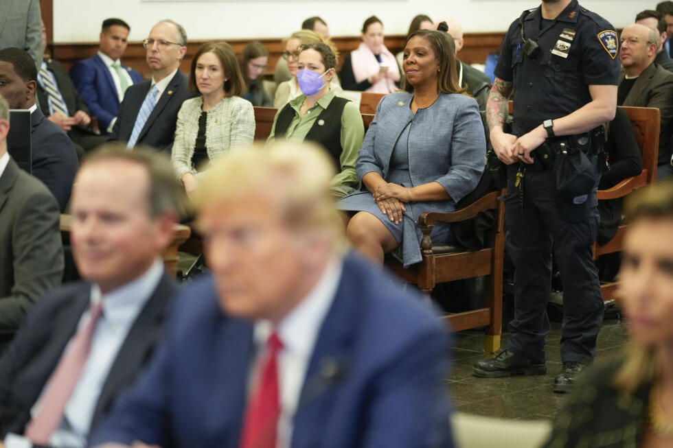 La procureure générale de l'Etat de New York Letitia James (veste bleu-gris), le 11 janvier 2024 à la Cour suprême de New York lors d'un procès contre la Trump Organization © Seth Wenig / POOL/AFP/Archives