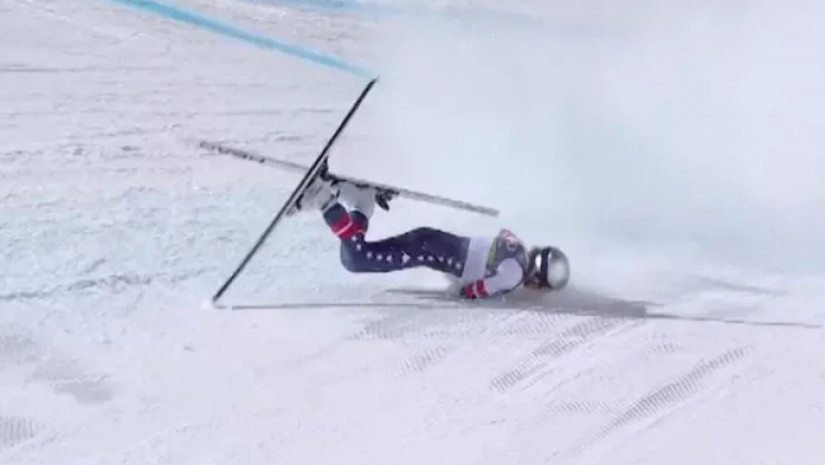 La "Speed Queen", championne olympique en 2010, est tombée après seulement 12 secondes de course, déséquilibrée lors du franchissement d'une porte, et est retombée lourdement sur le sol. Elle est restée allongée, grimaçante, de longues minutes pendant qu'elle était prise en charge par les équipes médicales.