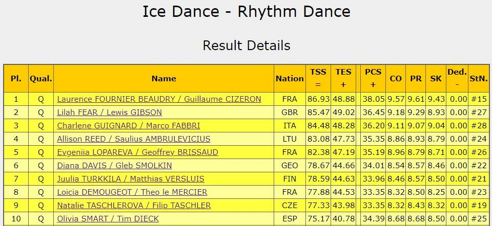 საქართველოს ყინულზე მოცეკვავეთა წყვილმა, დიანა დევისმა და გლებ სმოლკინმა მოკლე პროგრამით ასპარეზობა 78,67 ქულით დაასრულეს და თავისუფალი პროგრამით ასპარეზობის წინ მე-6 ადგილზე არიან.