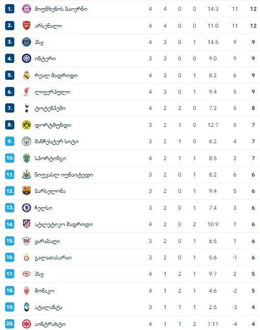 უეფას ჩემპიონთა ლიგაზე საწყისი ფაზის მეოთხე ტურის შეხვედრები გაიმართა.