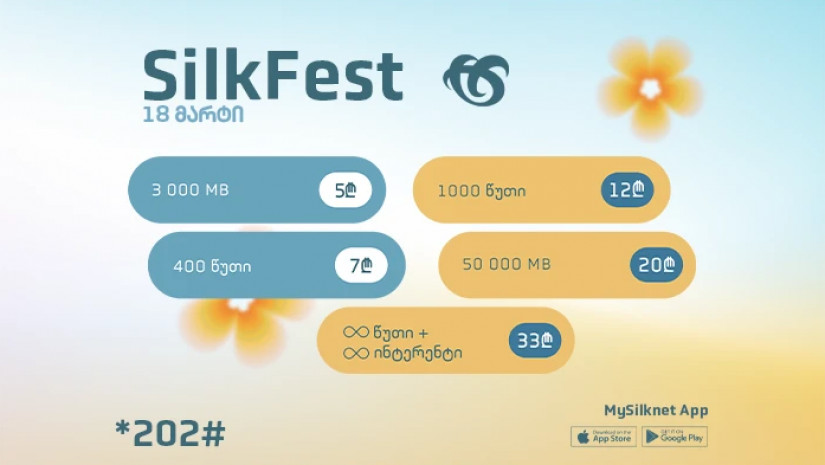 მხოლოდ 18 მარტს, სილქნეტის აბონენტებს ექნებათ შესაძლებლობა სილქფესტის აქციით შეიძინონ შემდეგი პაკეტები: