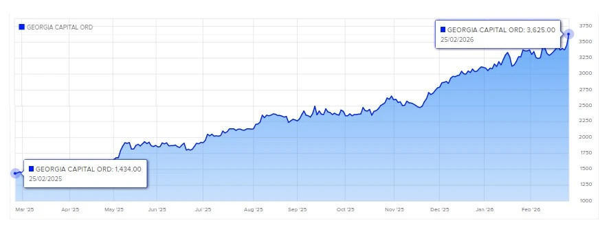 ასევე რეკორდულ მაჩვენებელზეა და 36,25 გირვანქა სტერლინგს უტოლდება, „საქართველოს კაპიტალის“ აქციის ღირებულება