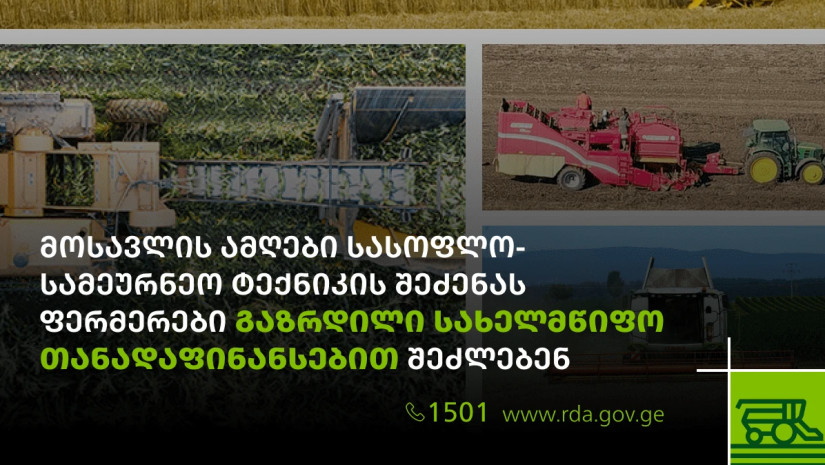 პროგრამაში შესული ცვლილებით, 150,000 ლარიდან 250,000 ლარამდეა გაზრდილი მოსავლის ამღები სასოფლო-სამეურნეო ტექნიკის შეძენაზე სოფლის განვითარების სააგენტოს თანადაფინანსების ჯამური ოდენობა.