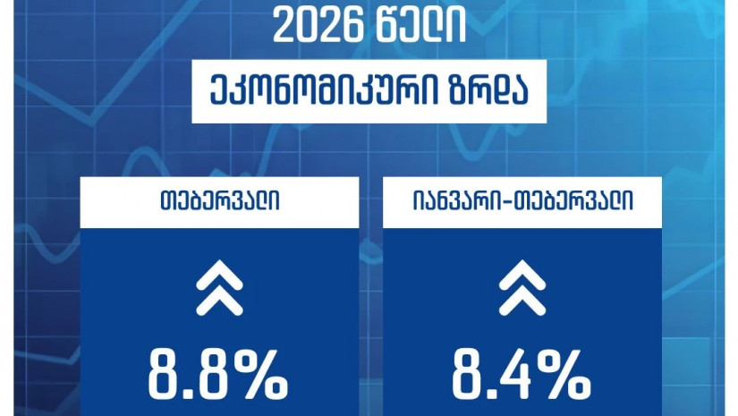 2026 წლის თებერვალში საქართველოს ეკონომიკა 8,8%-ით გაიზარდა, ხოლო იანვარ-თებერვლის საშუალო ეკონომიკური ზრდა 8.4%-ს გაუტოლდა.