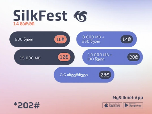 აქციების სერია „სილქფესტი“ ფიზიკურ და იურიდიულ აბონენტებს საშუალებას აძლევს ჩაირთონ ინტერნეტ და სასაუბრო მოცულობები, მრავალფეროვანი კომბინაციები სააქციო პირობით.