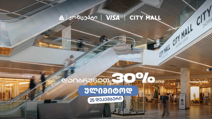 თიბისი კონცეპტმა მომხმარებელს ტრადიციულად განსაკუთრებული საახალწლო შეთავაზება მოუმზადა. მხოლოდ 25 დეკემბერს, თიბისი კონცეპტ Visa ბარათის მფლობელები, სითი მოლის შერჩეულ ობიექტებში 30%-ს ულიმიტოდ და მომენტალურად დაიბრუბენენ.