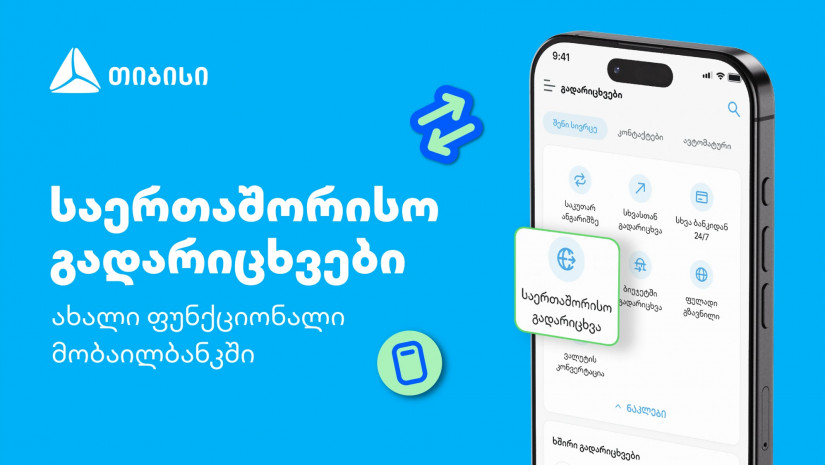 თიბისიმ, მომხმარებელთა ყოველდღიურობისგასამარტივებლად, კიდევ ერთი ახალი პროდუქტიდანერგა - მობაილბანკის მომხმარებელ ფიზიკურ პირებსსაერთაშორისო გადარიცხვების განხორციელება უკვეფილიალში ვიზიტის ან ვებ-ბანკში შესვლის გარეშე, პირდაპირ მობილური აპლიკაციიდან შეუძლიათ.