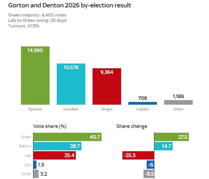 დიდი მანჩესტერის გორტონის და დეიტონის საარჩევნო ოლქში მმართველმა ლეიბორისტულმა პარტიამ „გამანადგუირებელი მარცხი“ განიცადა.