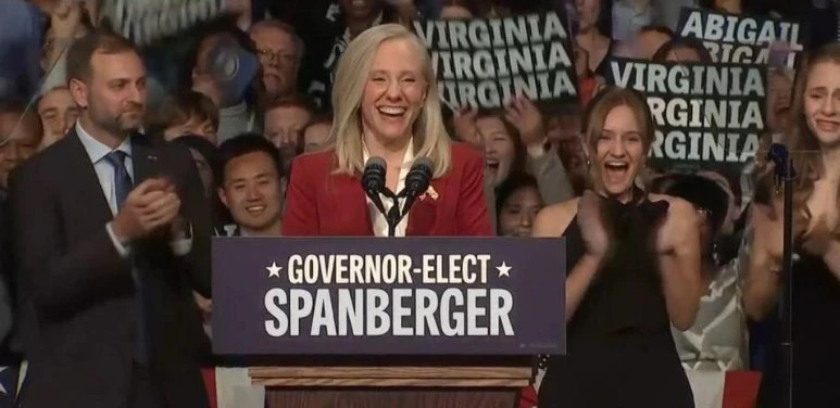 ვირჯინიის შტატის გუბერნატორის არჩევნებში დემოკრატმა ებიგეილ სპანბერგერმა გაიმარჯვა. მას ხმების 97%-ის დათვლის შემდეგ 57,4% აქვს მიღებული. რესპუბლიკელების კანდიდატმა უინსონ ერლ-სირსმა 42,3% მიიღო.