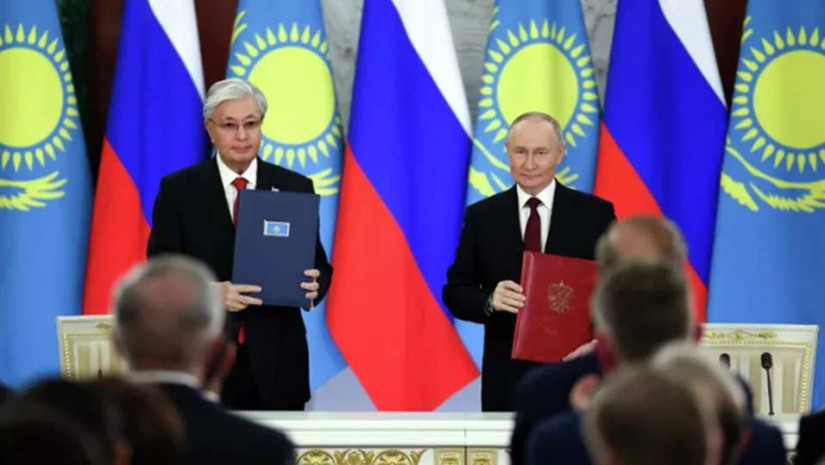 რუსეთის პრეზიდენტმა, ვლადიმერ პუტინმა და ყაზახეთის პრეზიდენტმა, ყასიმ-ჟომართ თოყაევმა კრემლში გამართული მოლაპარაკებების შედეგად სტრატეგიული პარტნიორობის დეკლარაციას მოაწერეს ხელი.