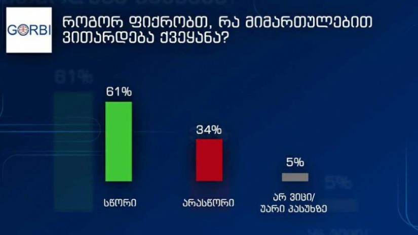34%-ს მიაჩნია, რომ ქვეყანა არასწორი მიმართულებით ვითარდება.