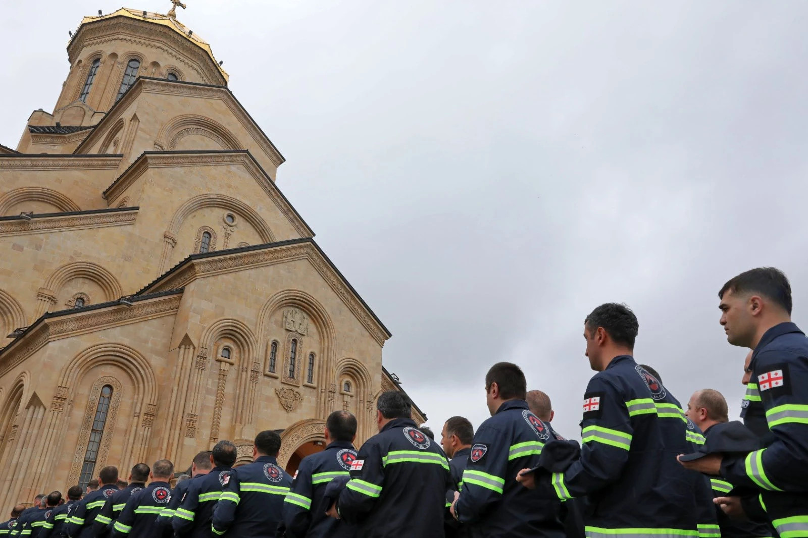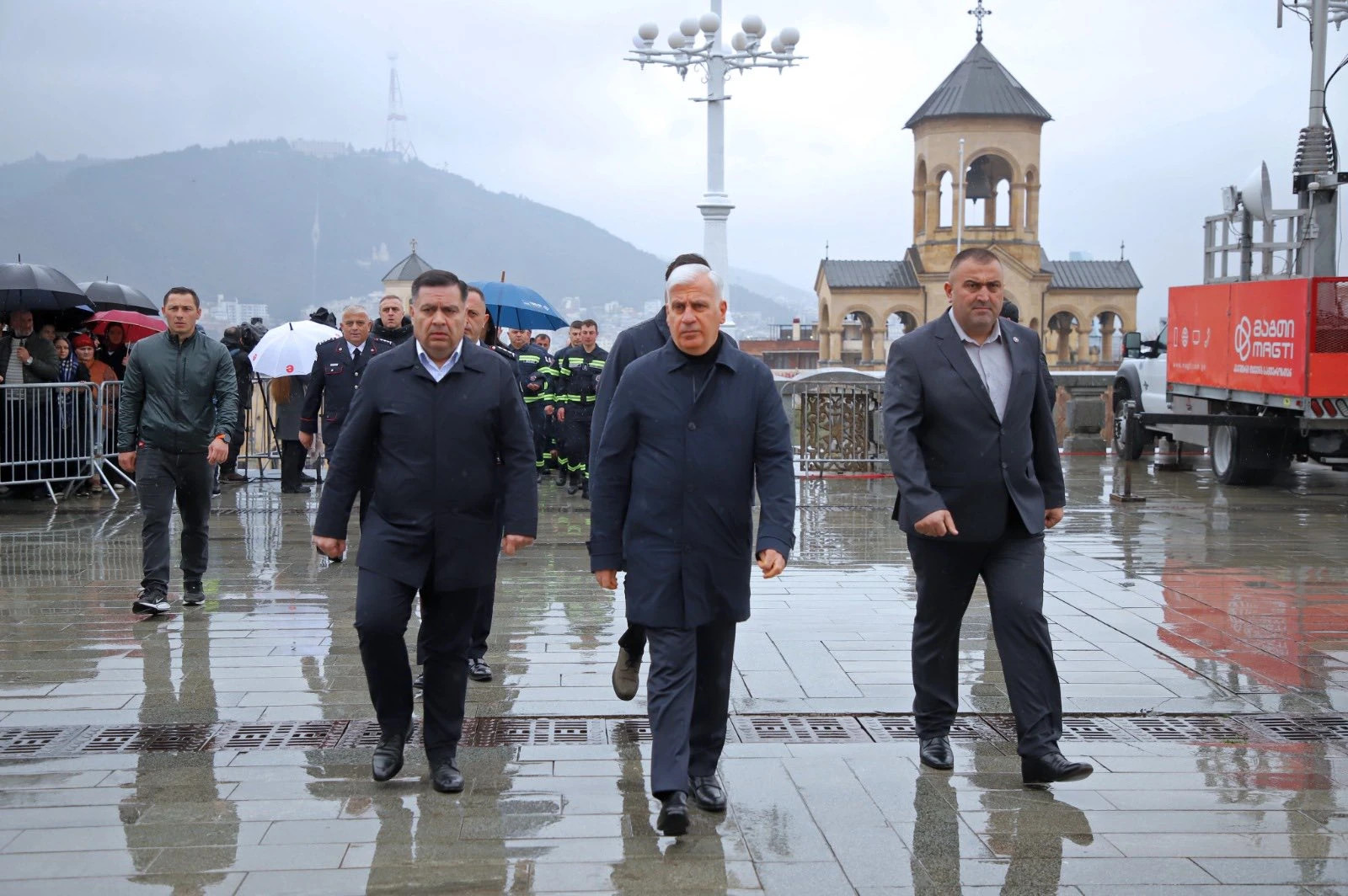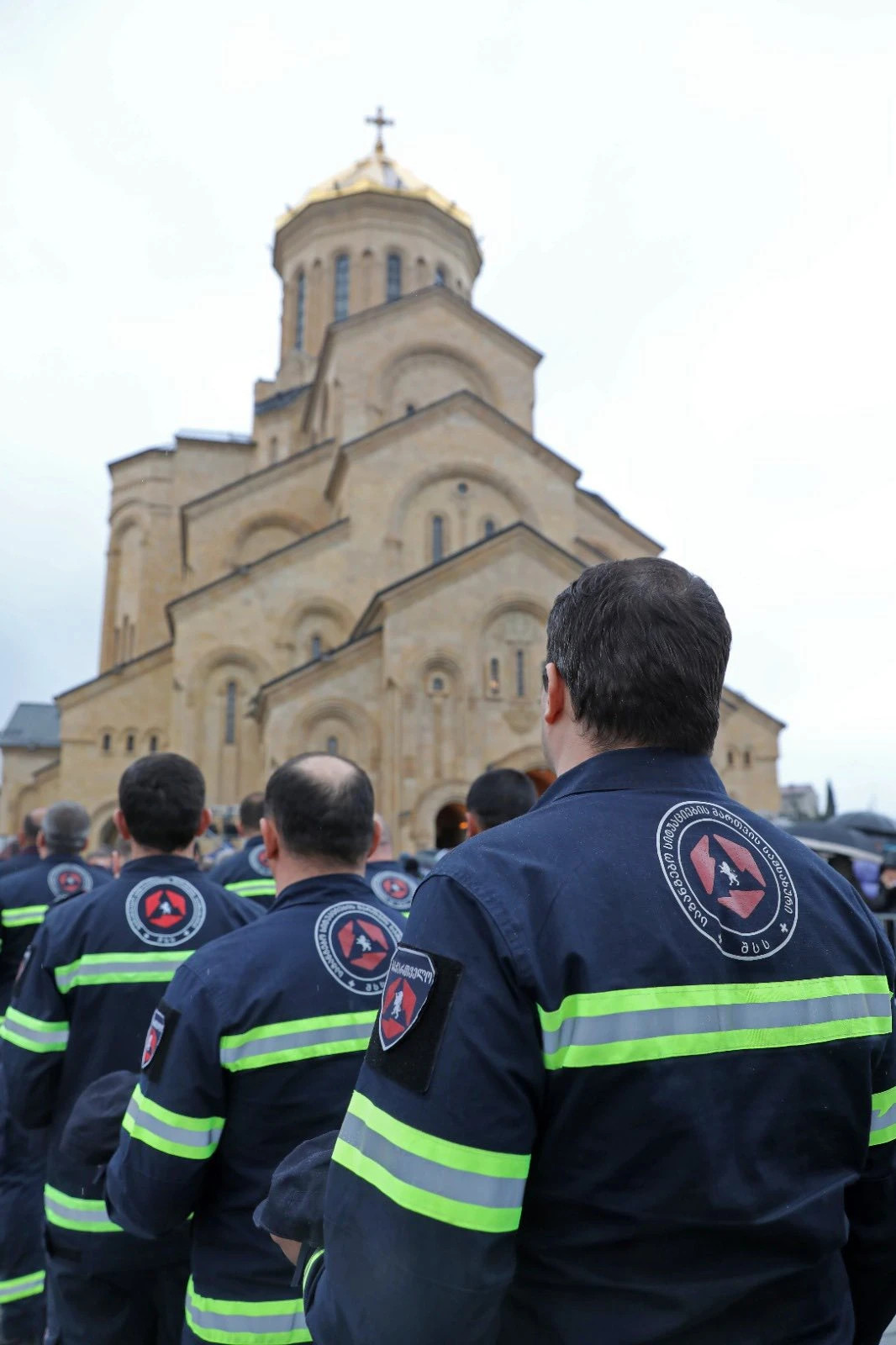 .ისინი, სამების საკათედრო ტაძარში მსვლელობით მივიდნენ. მსვლელობას წინ მიუძღვებოდნენ საგანგებო სიტუაციების მართვის სამსახურის უფროსი თემურ მღებრიშვილი და სამსახურის სხვა ხელმძღვანელი პირები.
