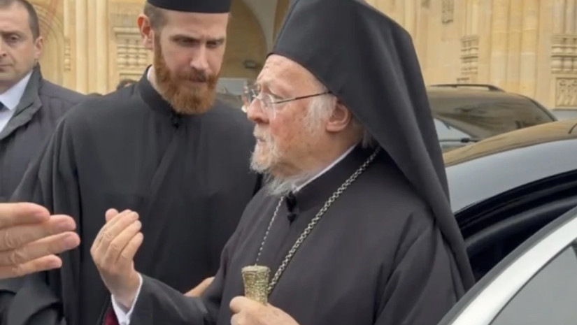 მსოფლიო პატრიარქი ბართლომეოსი დელეგაციის წევრებთან ერთად სამების საკათედრო ტაძარში მივიდა. მას საქართველოს საპატრიარქოს სინოდის წევრები, სამების ეზოში დახვდნენ.