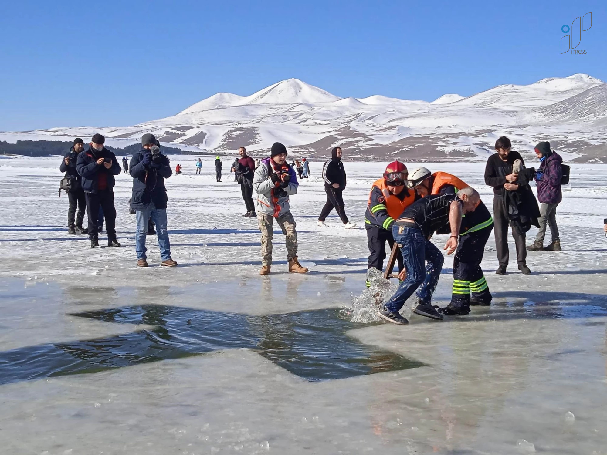ტბის ყინულის სისქე დაახლოებით 47-73 სმ შორისაა.