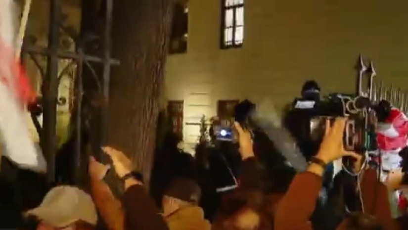 ათონელის ქუჩაზე მდებარე ორბელიანის სასახლეში ოპოზიციის აქციის მონაწილეებმა პრეზიდენტის სასახლის ჯებირები დაანგრიეს და ეზოში შეიჭრნენ.