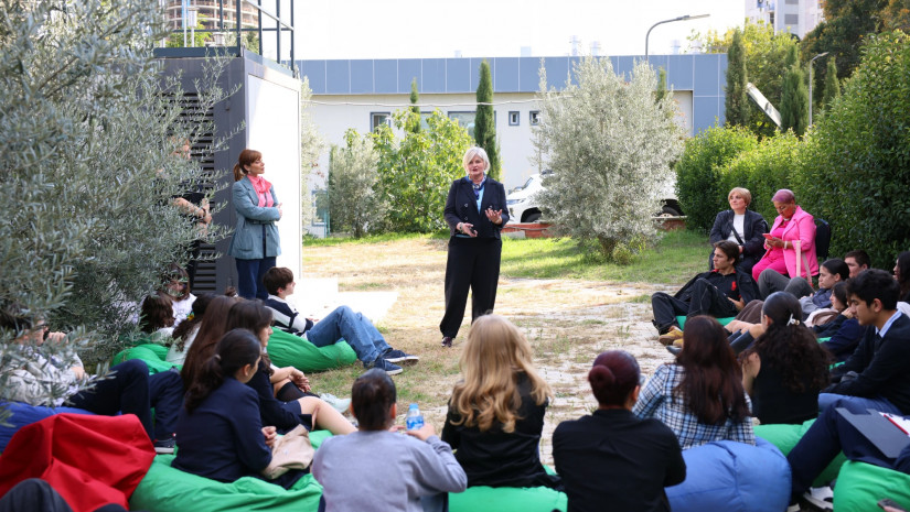 შეხვედრის ფარგლებში, სამინისტროს ნარჩენებისა და ქიმიური ნივთიერებების მართვის პოლიტიკის დეპარტამენტის უფროსის მოადგილე ირმა გურგულიანმა მოსწავლეებთან პლასტიკის საფრთხეების და მისი გამოყენების შემცირების მნიშვნელობაზე ისაუბრა.