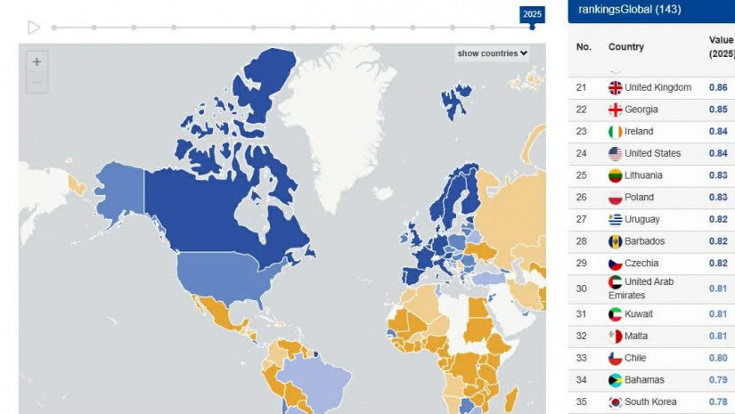 საქართველომ შეფასების 100 პროცენტიანი სისტემით 85% მიიღო, მსოფლიოში 22 ადგილზე დასახელდა, ევროპაში კი საუკეთესო ოცეულში მე-16 ადგილზე გავიდა. საქართველო უსწრებს ევროკავშირის წევრობის ყველა კანდიდატ ქვეყანას, ევროკავშირის და ნატოს წევრ 19 სახელმწიფოს : ამერიკის შეერთებულ შტატებს, ირლანდიას, ლიეტუვას, ლატვიას, ჩეხეთს, პოლონეთს, ხორვატიას, სლოვენიას, სლოვაკეთს, საბერძნეთს, კვიპროსს, მალტას, რუმინეთს, უნგრეთს, ბულგარეთს, მონტენეგროს, ჩრდილოეთ მაკედონიას, თურქეთს, ალბანეთს.