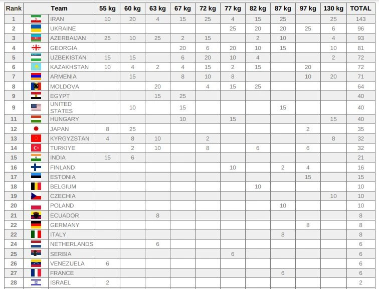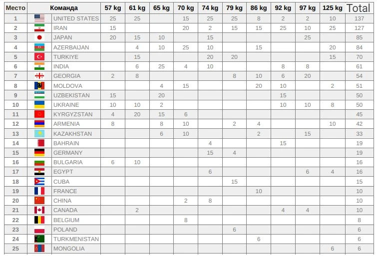 გუნდურ ჩათვლაში საქართველოს თავისუფალი სტილით მოჭიდავეებმა მე-7 ადგილი დაიკავეს.