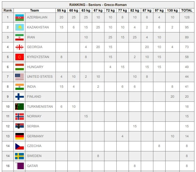 გუნდურ ჩათვლაში საქართველოს ბერძნულ-რომაული სტილით მოჭიდავეთა ნაკრებმა მე-4 ადგილი დაიკავა.
