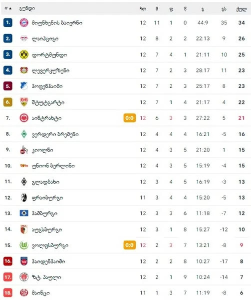 გერმანიის ბუნდესლიგაში მეთორმეტე ტურის შეხვედრები გაიმართა.