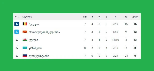 J ჯგუფის ლიდერმა ბელგიამ ყაზახეთში შეხვედრა ვერ მოიგო და ჯგუფური ტურნირის დასრულებამდე ერი ტურით ადრე მსოფლიო ჩემპიონატის პირდაპირი საგზურის მოპოვების შანსი ხელიდან გაუშვა.