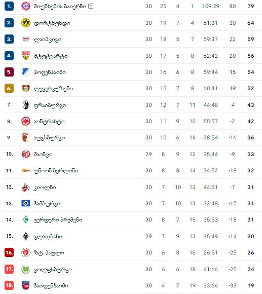 მიუნხენის „ბაიერნმა“ „შტუტგარტი“ დაამარცხა და დარჩენილი ოთხი ტურის შედეგების მიუხედავად ჩემპიონობა გაინაღდა.