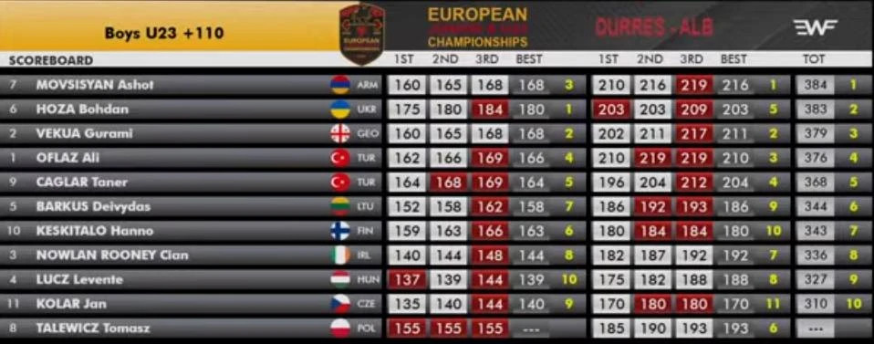 ევროპის ჩემპიონატი +110კგ წონითი კატეგორიის  ახალგაზრდა (23 წლამდე ასაკის) ძალოსანთა გამოსვლით დასრულდა.
