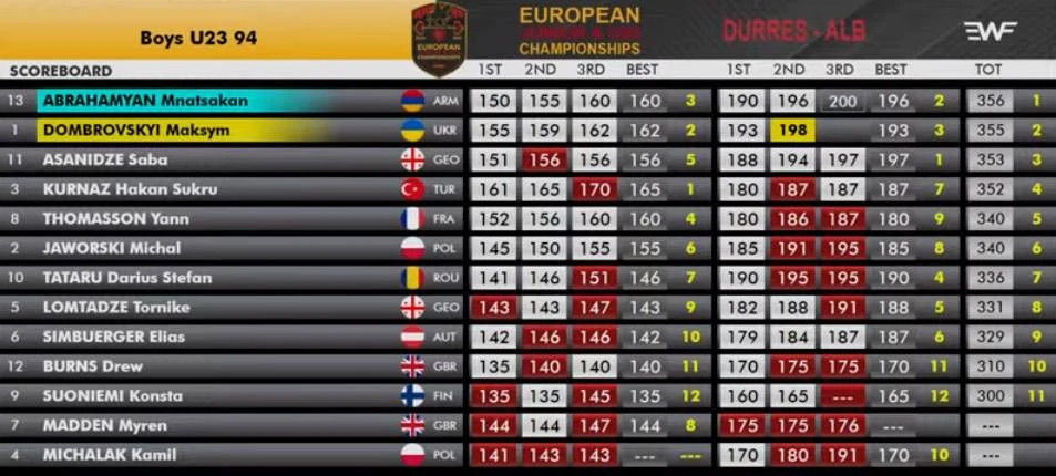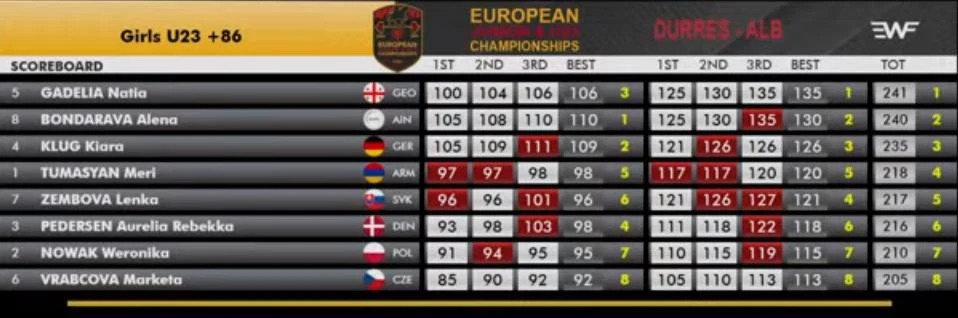 ალბანეთის ქალაქ დურესში ჭაბუკი და ახალგაზრდა ძალოსნების ევროპის ჩემპიონატი გრძელდება.