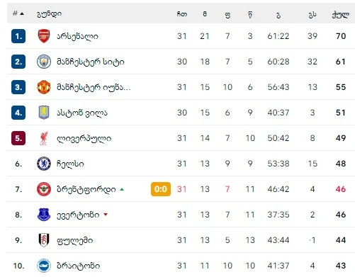 „ბრაიტონი“ - „ლივერპული“ 2:1(1:1)
