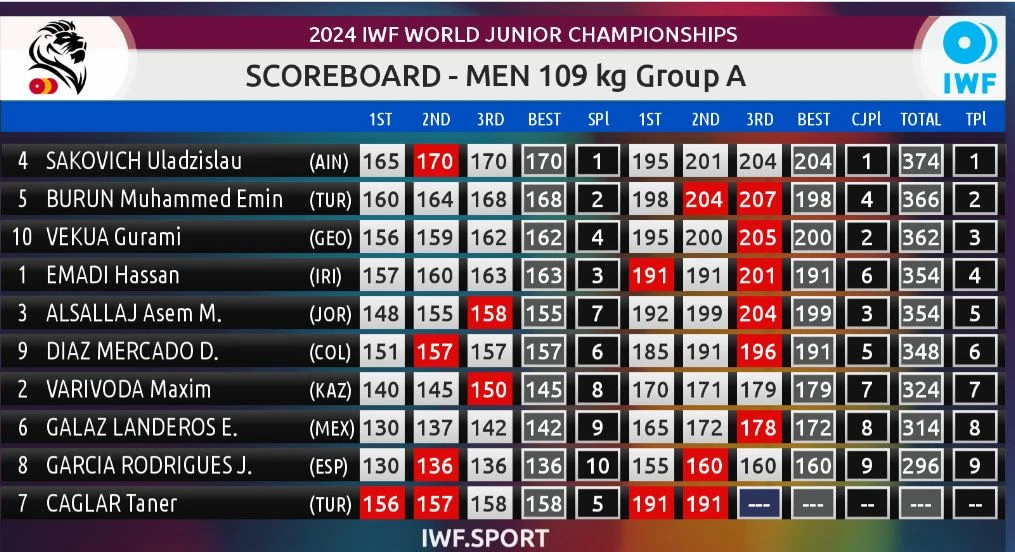 ესპანეთის ქალაქ ლეონში მიმდინარე 20 წლამდე ასაკის ძალოსანთა მსოფლიო პირველობაზე დასრულდა ასპარეზობა 109 კგ წონითი კატეგორიაში.
