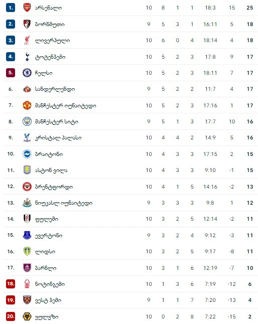ინგლისის პრემიერლიგაში მეათე ტურის შეხვედრები მიმდინარეობს.