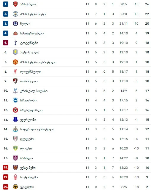 ინგლისის პრემიერლიგაში მეთერთმეტე ტურის შეხვედრები დასრულდა.