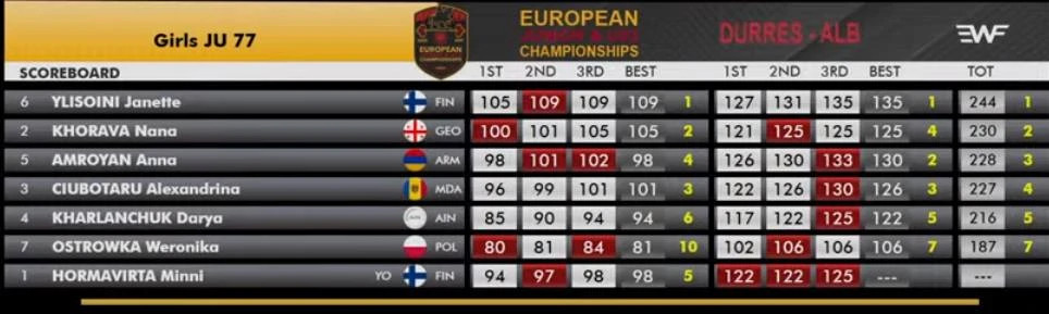 ალბანეთის ქალაქ დურესში ჭაბუკი და ახალგაზრდა ძალოსნების ევროპის ჩემპიონატი გრძელდება.