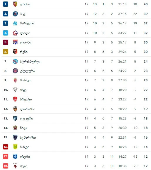 საფრანგეთის ლიგა 1-ში მეჩვიდმეტე ტური დასრულდა.