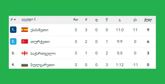 ამავე ჯგუფში გამართულ მერე მატჩში თურქეთმა ბულგარეთში მასპინძლებს დიდი ანგარიშით მოუგო და შედეგად, საქართველოს ფეხბურთელთა ნაკრების პლეი-ოფში გასვლა, თურქეთსა და ბულგარეთში გასვლითი შეხვედრების მოგების შემთხვევაშიც კი, პრობლემატური გახდა