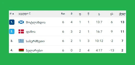 C ჯგუფი შოტლანდიამ სახლში დანია დაამარცხა მსოფლიო ჩემპიონატის საგზური მოიპოვა. შოტლანდია მსოფლიო ჩემპიონატის ფინალურ ეტაპზე ბოლოს 1998 წელს მონაწილეობდა.