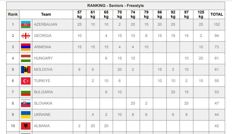 საერთო გუნდურ ჩათვლაში პირველ ადგილზე აზერბაიჯანი გავიდა, საქართველო კი მეორე ადგილზე.