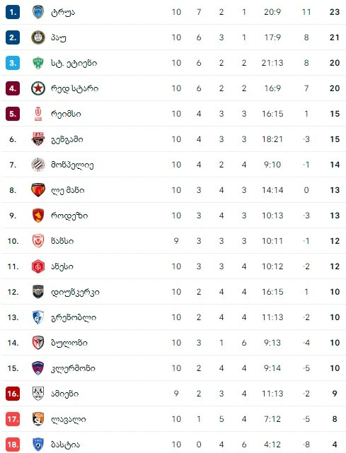საფრანგეთის ლიგა 2-ში მეათე ტურის შეხვედრები გაიმართა